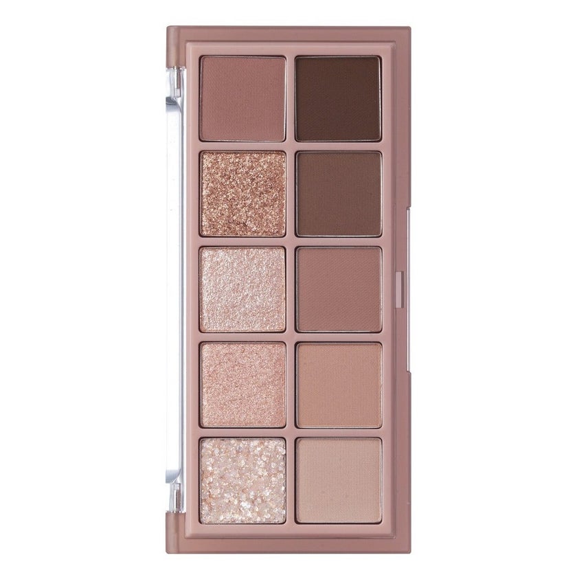 Rom&nd Better Than Palette, Eyeshadow Palette, Matte & Glitter, 03 Rosebud Garden, 7.5g is an eyeshadow palette featuring 10 stunning shades, designed to suit all skin tones. This palette includes a combination of ultra-fine matte formula shades and dewy glitter colors for a versatile, long-lasting finish. The matte shades glide smoothly across the eyelids, providing rich pigmentation and a soft finish, while the glitters add a pop of sparkle that lasts throughout the day. Whether you're looking for a bold or subtle look, this palette provides a wide range of colors that allow you to create endless eye-catching styles. The formula’s longevity ensures your eyeshadow stays vibrant all day without creasing or fading.