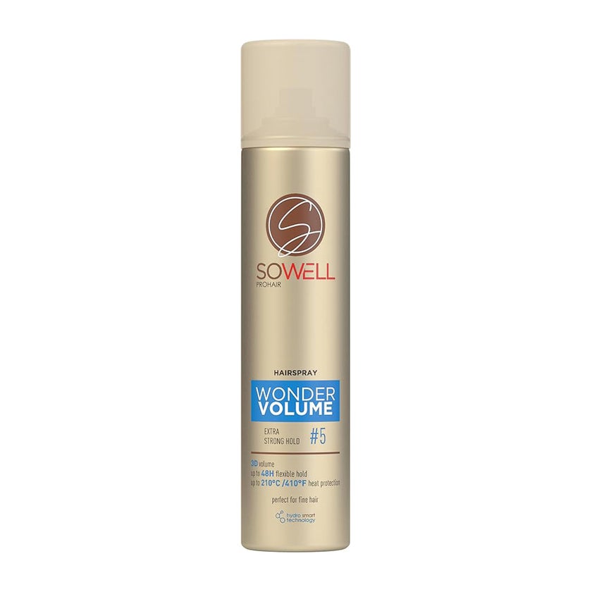 Sowell Wonder Vol Extra Strong Hold #5 Hairspray is designed for those who want expressive volume, flexible hold, and a polished finish without heaviness. This professional styling mousse delivers lift from the roots while keeping hair light, airy, and naturally mobile. It is ideal for creating styles that look fuller and more dynamic, whether for everyday wear or more refined looks. The mousse enhances the natural shape of the hair, giving strands a groomed appearance. The advanced formula is built around Hydro Smart Technology, a carefully balanced moisturizing complex that supports hair health during styling. Enriched with hyaluronic acid, panthenol, B vitamins, and selected microelements, the mousse helps protect hair from dehydration while maintaining softness and elasticity. These ingredients work together to strengthen hair from within, support moisture retention, and improve overall resilience. SoWell Wonder Volume mousse offers adaptable hold that can be adjusted based on styling needs, allowing users to move from subtle definition to more structured, long lasting styles. The lightweight texture spreads easily through the hair, forming a delicate veil that lifts at the roots and enhances volume along the entire length. It helps reduce unwanted static, improves manageability, and supports color vibrancy by keeping hair balanced and hydrated. This versatile styling mousse is suitable for all hair types, with particular benefits for fine and thin hair that needs extra body and structure. It works equally well for straight, wavy, or curly textures and is an excellent option for both women and men seeking reliable styling support. Easy to brush out and cleanse away, it integrates seamlessly into a complete hair care routine without interfering with personal fragrance. SoWell Wonder Volume Weightless Hair Mousse delivers professional styling performance with a focus on care, comfort, and confidence.