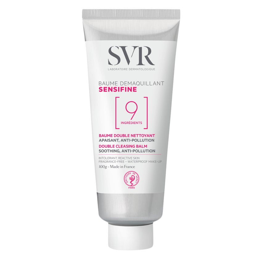 SVR Sensifine 9 Double Cleansing Balm is a gentle yet effective cleansing treatment designed to remove makeup and impurities while respecting the needs of sensitive and reactive skin. Formulated with only nine carefully selected ingredients this minimalist balm helps reduce irritation while delivering thorough cleansing performance. Its innovative balm to oil texture melts into the skin dissolving makeup including waterproof formulas along with dirt and urban pollutants without the need for harsh rubbing. Enriched with nourishing ingredients such as shea butter coconut oil and sunflower wax this cleansing balm helps maintain the skin barrier while providing hydration and comfort during cleansing. As it transforms into a silky oil and then emulsifies with water it leaves the skin feeling clean soft and refreshed without any greasy residue. The soothing formula helps calm the skin while preserving its natural balance making it suitable for daily use on the face eyes and lips. With regular use it helps maintain a smoother healthier looking complexion while making cleansing a comfortable and enjoyable step in your skincare routine.