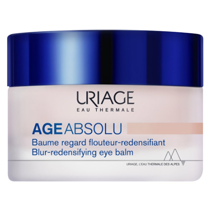 Uriage Age Absolu Blur Redensifying Eye Contour Balm is an advanced anti aging eye treatment designed to restore density smooth wrinkles and enhance radiance in the delicate eye area. This high performance formula targets visible signs of aging such as fine lines puffiness dark circles and loss of firmness by stimulating collagen production and improving skin structure. Developed with a powerful blend of procollagen peptides retinol hyaluronic acid and vitamins C and E it helps strengthen the skin while delivering deep hydration and antioxidant protection. The innovative bouncy balm texture melts instantly into the skin creating an immediate blurring effect that smooths the appearance of wrinkles and brightens the eye contour within seconds. With continued use it works to visibly improve elasticity firmness and density while reducing signs of fatigue and aging over time. The formula also helps lift the appearance of the eyelids and enhance overall radiance making the eyes look more refreshed and youthful. Suitable even for sensitive mature skin this eye balm can also be used as a makeup base for a smoother finish. Ideal for daily use it helps transform the eye area leaving it visibly smoother brighter and more revitalised.