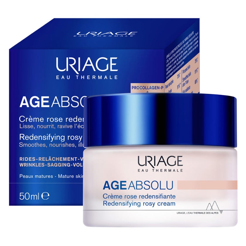Uriage Age Absolu Redensifying Rosy Cream is an advanced anti-aging day cream designed to target the visible signs of aging in mature skin. This luxurious cream stimulates collagen synthesis, restores density, and plumps the skin with its powerful combination of Procollagen Peptide, Retinol, Hyaluronic Acid, and Vitamins C & E. The skin’s natural firmness and radiance are revived, while fine lines, wrinkles, and sagging are visibly reduced. This multi-functional cream also features the TELOMERES PROTECT complex and Blue Light Barrier technology to protect the skin from environmental damage, UV rays, and harmful blue light. Natural-origin pearls and vitamins enhance the skin’s natural rosy glow, leaving it brighter, more even-toned, and luminous. The rich, velvety texture of this cream provides immediate comfort, and its lipid-replenishing plant complex (Shea Butter, Illipe Butter, Jojoba Oil) intensely nourishes and softens the skin. With Uriage Thermal Water, the formula is soothing and calming, making it suitable even for sensitive skin. The cream’s non-greasy, non-sticky texture makes it an excellent base for makeup. Formulated with 91% ingredients from natural origin and housed in a 100% recyclable glass jar, this cream embodies an eco-friendly approach to skincare.