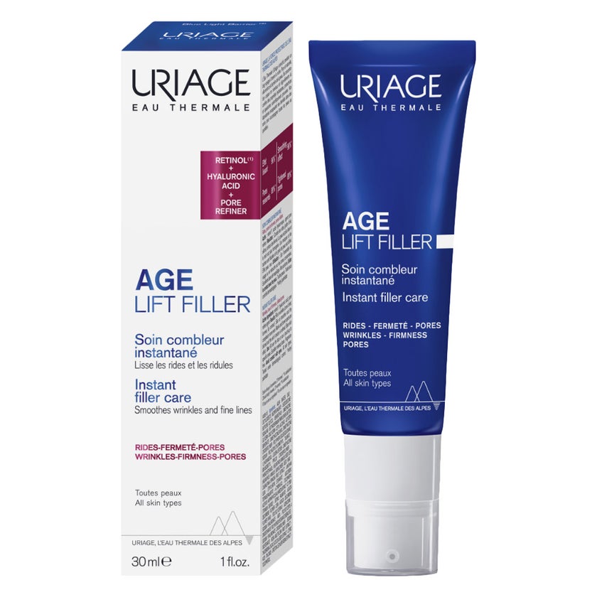 Uriage Age Lift Instant Filler Care is a rich cream which is specially formulated to reduce wrinkles and increase skin firmness while shielding the skin from the everyday aggressors of blue light, UV rays, pollution, stress, and exhaustion. For a powerful anti-aging effect, the formula combines a retinol derivative with hyaluronic acid. Together, these components enhance skin firmness while decreasing the visibility of fine lines and wrinkles. Retinyl palmitate is a retinol derivative used for its efficacy and high tolerance. As a result, it boosts skin cell renewal and works to visibly reduce the appearance of lines and wrinkles, promoting smoother, firmer, and radiant skin. Hyaluronic acid with low molecular weight can replenish moisture in the skin, ensuring that it remains supple and youthful. Therefore, not only hydrates the skin but also plumps it, reducing the appearance of fine lines and wrinkles as well as improving skin firmness. But most important, is the cross-linked hyaluronic acid that visibly plumps the skin and fills the wrinkles. At the same time, a pore-refiner ingredient along with soft-focus powders provide a blurring effect to mask spots, pores, and uneven skin texture. The skin is also protected from the harmful effects of pollution and blue light by blue light barrier technology. Uriage Age Lift Instant Filler Care also contains Uriage thermal water, naturally rich in minerals, soothes the skin and relieves sensations of discomfort. This anti-aging instant filler care fills in wrinkles (crow’s feet, furrows, lip contour). Skin is smoother and the complexion more even. Marks and brown spots are blurred and the skin’s texture is refined. Bare skin effect. In conclusion, this filler treatment instantly corrects wrinkles and open pores at the same time providing a smoother and more even complexion