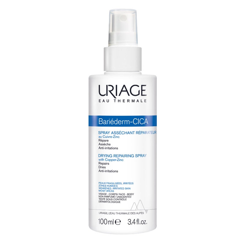 Uriage Bariéderm Cica-Spray is a drying and repairing spray specifically formulated for sensitive, irritated, or damp skin. Ideal for use on weakened epidermis, this spray combines the soothing benefits of Uriage Thermal Water with the purifying properties of Copper Gluconate and Zinc Oxide. It is designed to regulate bacterial skin flora, reduce inflammation, and restore balance to sensitive areas, especially skin folds and weeping skin. The spray’s formula contains Smectite, a key ingredient that absorbs excess moisture and helps dry out macerated skin, promoting healing in damp conditions. Its unique TLR2-Regul patented technology helps calm the skin, while the high tolerance formula ensures that it is safe for daily use, even on the most fragile skin. In clinical studies, 96% of users observed a significant reduction in the dampness of weeping skin areas, while 88% experienced less itching after just 10 days of use. The spray’s practical, hygienic application makes it easy to target affected areas for fast relief.
