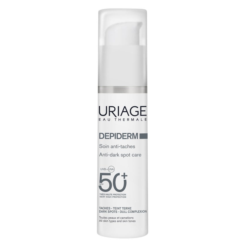 Uriage Depiderm SPF50+ anti-brown spot daytime care cream is specially formulated with advanced MELA technology to correct dark spots and other areas of hyperpigmentation and prevent their re-appearance. Anti-brown spot cream contains UV filters providing very high protection of SPF 50+ from harmful radiation and it reduces the chances of your skin developing sun-induced pigment spots. It contains vitamin C to provide radiance and antioxidant support, pea and sucrose extract, enoxolone for correcting dark spots. Melanin is a natural pigment that gives colour to the skin. Increased melanin production and hyperpigmentation can be caused by exposure to sunshine, hormonal effects, and ageing. Hyperpigmentation causes uneven skin by appearing as dark patches and ageing spots (also known as sunspots). Uriage Depiderm SPF50+ anti-brown spot daytime cream is developed and recommended by dermatologists enriched with Uriage thermal water that helps to soothe and protect the skin against oxidative stress. It is non-comedogenic, fragrance free and suitable for all types of skin. Its light melting creamy texture spreads easily and combats dull complexion and helps to achieve unified skin complexion.