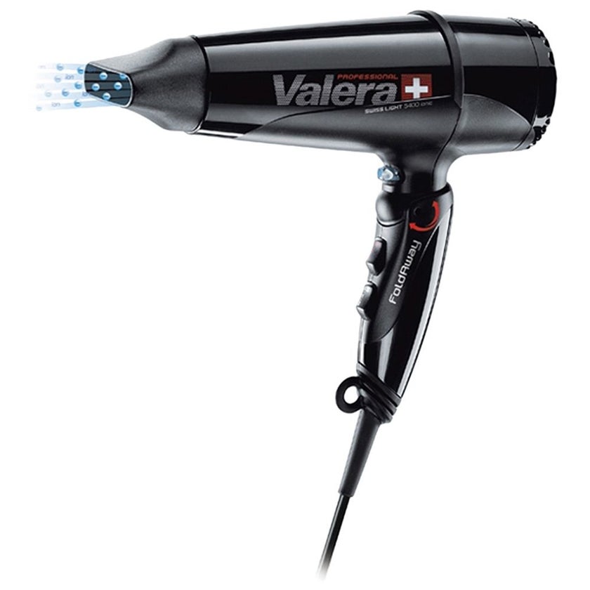Valera Swiss Light FoldAway 5400 2000W Ionic Hair Dryer is an ultra-light folding professional hair dryer which has 3 temperature and 3 speed modes, which makes it easy to choose the appropriate type of your hair. Separately, a cold air supply button is provided to secure the stacking result. Thanks to the presence of the ion generator on the basis of tourmaline, the hair retains its natural moisture, which makes it possible to do regular laying and drying without damaging them. A highly flexible power cord with a length of 3m will not limit your movements while working with the device.The device is convenient for storage or for trips thanks to the low weight (390g) and the folding handle.