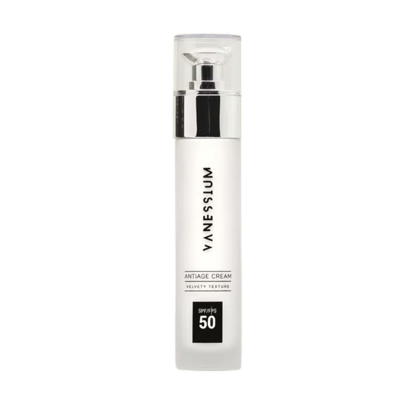 Vanessium Anti Age Cream SPF50 Sun Protection is a powerful, multi-tasking skincare product designed to protect your skin from harmful sun exposure while combating signs of aging. This advanced cream combines broad-spectrum SPF50 with anti-aging ingredients like hyaluronic acid, which deeply hydrates, smooths, and plumps the skin, reducing the appearance of fine lines and wrinkles. Aloe vera and bisabolol provide a calming effect, soothing even the most sensitive skin. The lightweight, oil-free formula is ideal for oily or acne-prone skin, absorbing quickly and leaving a velvety finish without clogging pores. This water-resistant cream ensures lasting protection, even during water activities. Regular use promotes healthier, younger-looking skin with a radiant, glowing complexion.